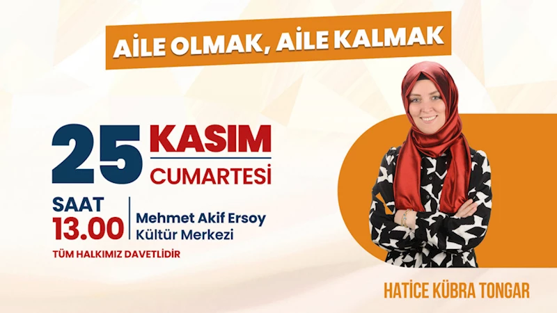 Büyükşehir Belediyesi Kasım Kültür Sanat Sezonu'nda Aile Danışmanı – Yazar Hatice Kübra Tongar'ın katılımıyla 'Aile Olmak, Aile Kalmak' konulu söyleşi düzenlenecek. 25 Kasım Cumartesi günü Mehmet Akif Ersoy Kültür Merkezi'nde gerçekleştirilecek etkinlik saat 13.00'da başlayacak.
