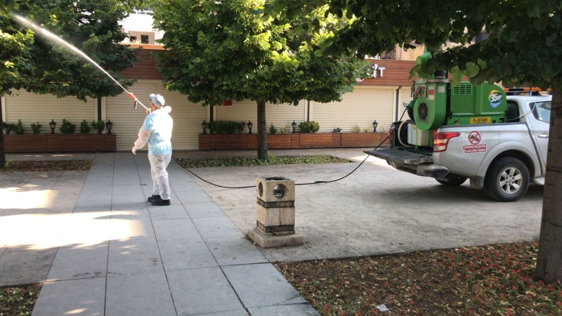 ekiplerimiz, ağaçlarda yaprak bitine karşı ilaçlama çalışmalarına devam ediyor.