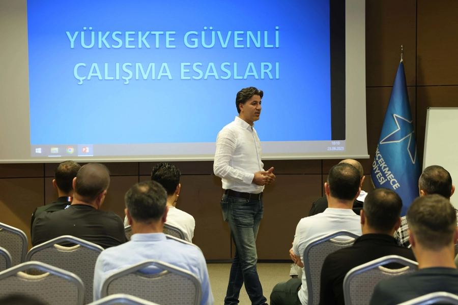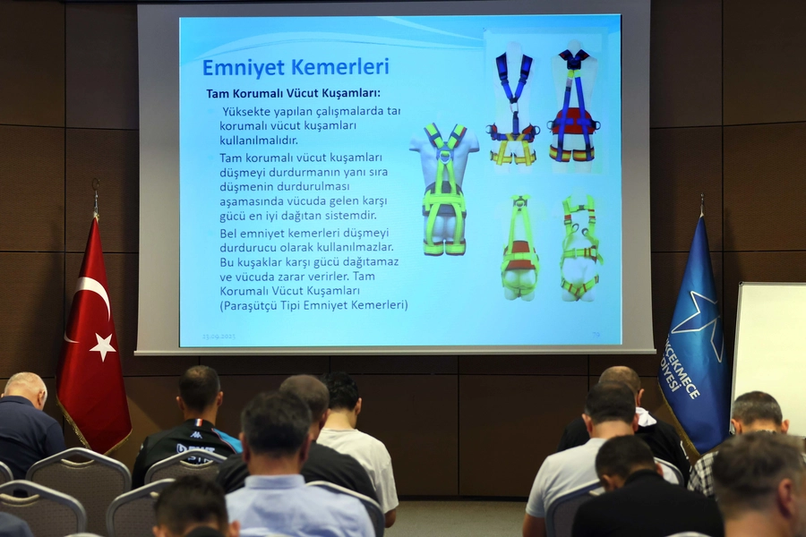Belediye Başkanlığı Çok Amaçlı Salonu’nda gerçekleştirilen eğitimde Küçükçekmece Belediyesi A Sınıfı İş Güvenliği Uzmanı Yakup Yıldız; yüksekten düşme sebepleri, düşmeye karşı alınabilecek önlemler, merdivenle ve iskelelerle yapılan çalışmalar, genel öneriler, işçi ve işveren sorumluluğu gibi konularda ayrıntılı bilgi verdi.