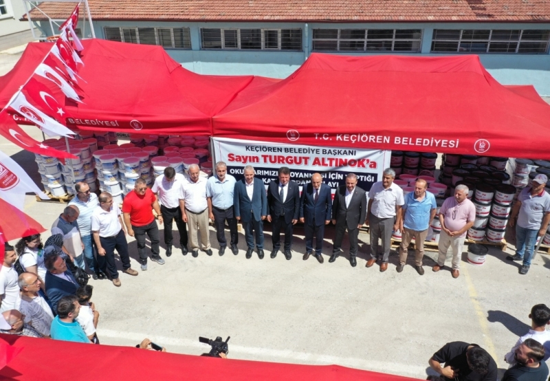 Keçiören Belediyesi, ilçedeki devlet okullarının tadilat çalışmalarında kullanılması için talepte bulunan birçok okula duvar boyası desteği sağladı.