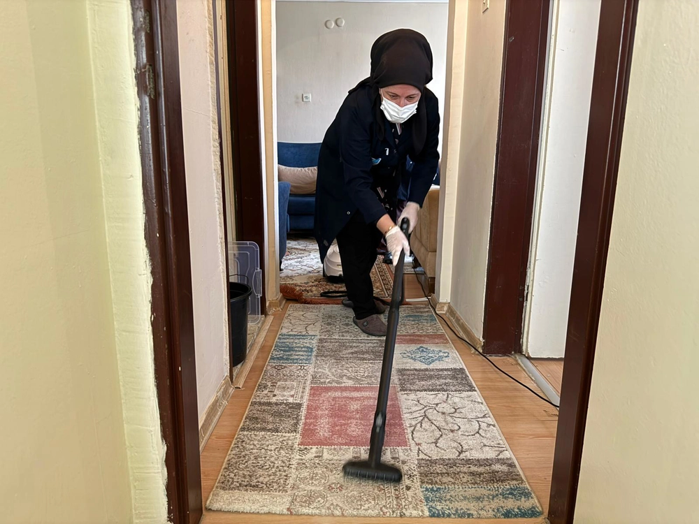 Belediye ekipleri, 65 yaş üstü ve yalnız yaşayan ihtiyaç sahibi vatandaşların evlerinde kapsamlı temizlik hizmeti veriyor. Hizmet kapsamında perde, halı yıkama, cam silme ve detaylı mutfak-banyo temizliği yapılıyor.