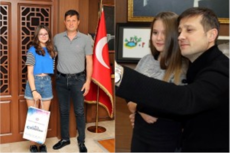 Yıllar önce Belediye Başkanımız Vahap Akay’ı ziyaret ederek kendisi için yazdığı şiiri okuyan Duru Doğa Yıldıran, bu kez LGS Türkiye 1’incisi olarak Başkanımız Akay’ı ziyaret etti.