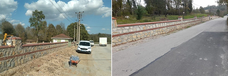Kocaeli Büyükşehir Belediyesi, vatandaşların mezarlık ziyaretlerini rahat ve huzurlu bir ortamda geçirebilmeleri için güvenlik ve temizlik başta olmak üzere her türlü bakımı periyodik olarak sürdürüyor. Bu kapsamda mezarlıkların dış görünüşünün daha estetik bir görüntüye kavuşması amacıyla kent genelinde bakım ve düzenlenme çalışması yapan Park ve Bahçeler Dairesi Başkanlığı ekipleri, Kocaeli genelindeki mezarlıklara taş duvar ve tel çit çalışmaları yapıyor.