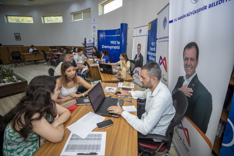 Büyükşehir Belediyesi Kongre Merkezi’nde MERCİ Öğrenci Danışmanlık Merkezi’ndeki rehber öğretmenlerin yanı sıra devlet ve vakıf üniversitelerinden katılım sağlayan öğretim elemanı ve üniversite temsilcileri, öğrencilere üniversite kontenjanları, başarı sıralaması ve bölüm içerikleri hakkında danışmanlık hizmeti sunuyor.