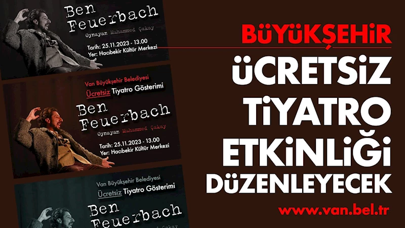 Her hafta bir birinden güzel etkinlikleri Vanlılar ile buluşturan Kültür ve Sosyal İşler Dairesi Başkanlığı 25 Kasım Cumartesi günü saat 13:00’da Hacıbekir Kültür Merkezinde ‘Ben Feuerbach’ tiyatro oyunu sergileyecek.