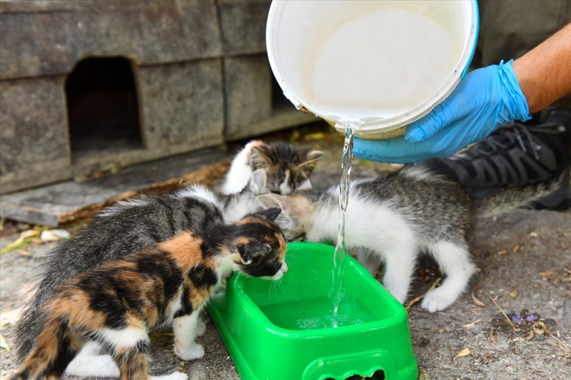 Artan hava sıcaklıkları nedeniyle sokak hayvanlarının susuz