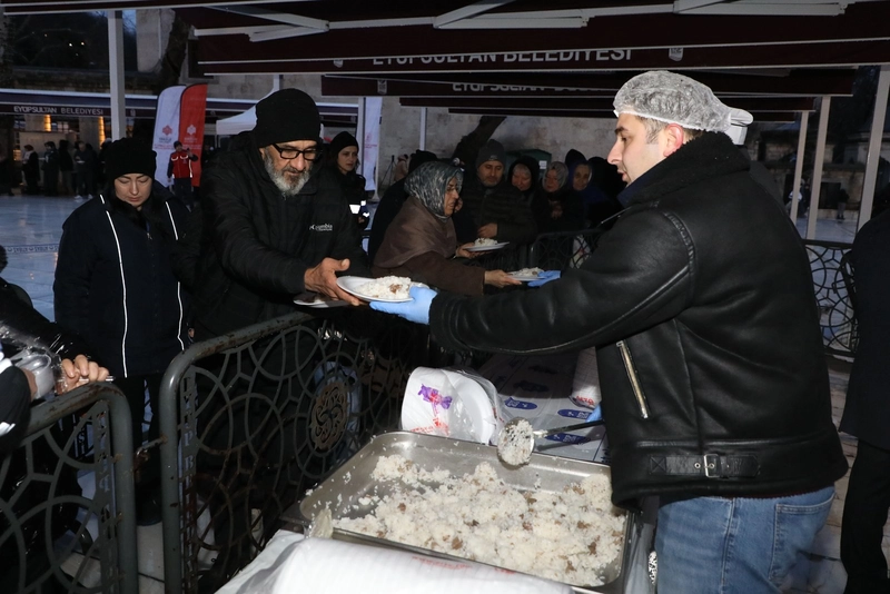 Eyüpsultan Belediyesi, Berat Kandili dolayısıyla Eyüp Sultan Camii Meydanı'nda vatandaşlara etli pilav ikramında bulundu.