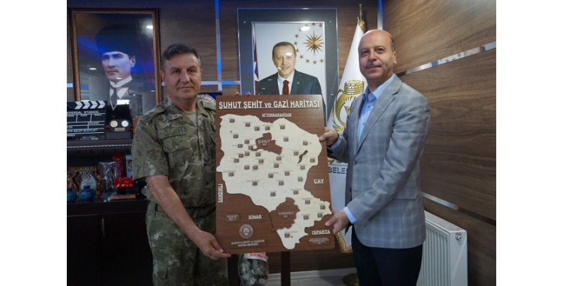 İlçemize ziyarette bulunan Afyonkarahisar İkmal ve Garnizon Komutanı Tuğgeneral Osman Alp Komutanımıza nazik ziyaretlerinden dolayı Başkan Bozkurt teşekkürlerini iletti.