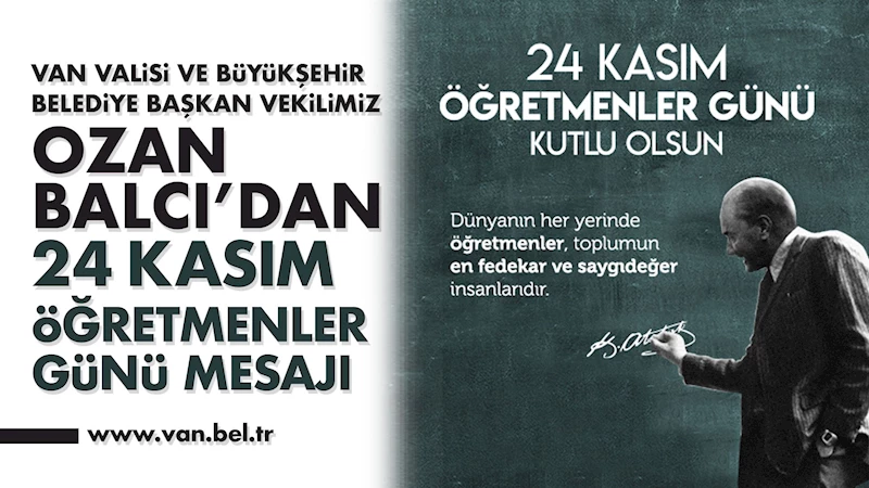 Van Valisi ve Büyükşehir Belediye Başkan Vekilimiz Ozan Balcı “24 Kasım Öğretmenler Günü” nedeniyle bir mesaj yayımladı.