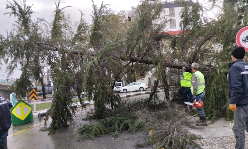 Manisa'da dün akşam saatlerinden itibaren etkili olan fırtınanın yaşamı olumsuz etkilememesi için sahada olan Manisa Büyükşehir Belediyesi, fırtına nedeniyle devrilen ağaçları kaldırdı, budama çalışması gerçekleştirdi.