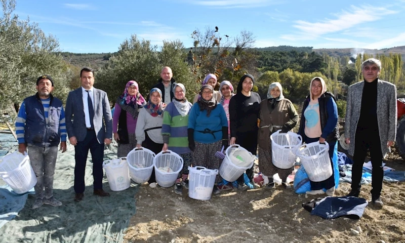Manisa Büyükşehir Belediyesi tarafından tarım emekçilerine yönelik olarak başlatılan koruyucu malzeme dağıtımı Soma ilçesi ile devam etti. Genel Sekreter Yardımcısı Ali Öztozlu ve Kırsal Hizmetler Dairesi Başkanı Yılmaz Usta, Soma ilçesinde Karacakaş-Bayat-Çavdır Mahallelerinde zeytin hasadında çalışan emekçileri ziyaret ederek, koruyucu malzeme dağıttı.