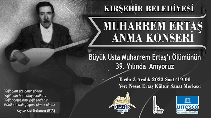 Ekicioğlu, 3 Aralık 2023 Pazar günü Neşet Ertaş Kültür Sanat Merkezi'nde saat