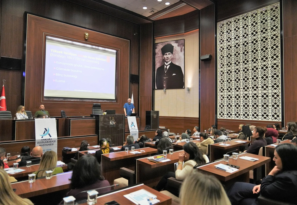Alanında uzman isimler tarafından verilen eğitimde konuşan Kardiyoloji Uzmanı Prof. Dr. Mete Alpaslan, "Yüksek Tansiyon ve Kalp Hastalıklarının Belirtileri" başlıklı sunum yaptı. Alpaslan, tansiyon değerleri, yüksek tansiyonun zararları ve kalp hastalıklarının belirtilerini detaylı olarak anlattı. Yüksek tansiyonun çoğunlukla belirti vermeden ilerlediğini belirterek, düzenli takip ve gerektiğinde ilaç tedavisinin önemini vurguladı.