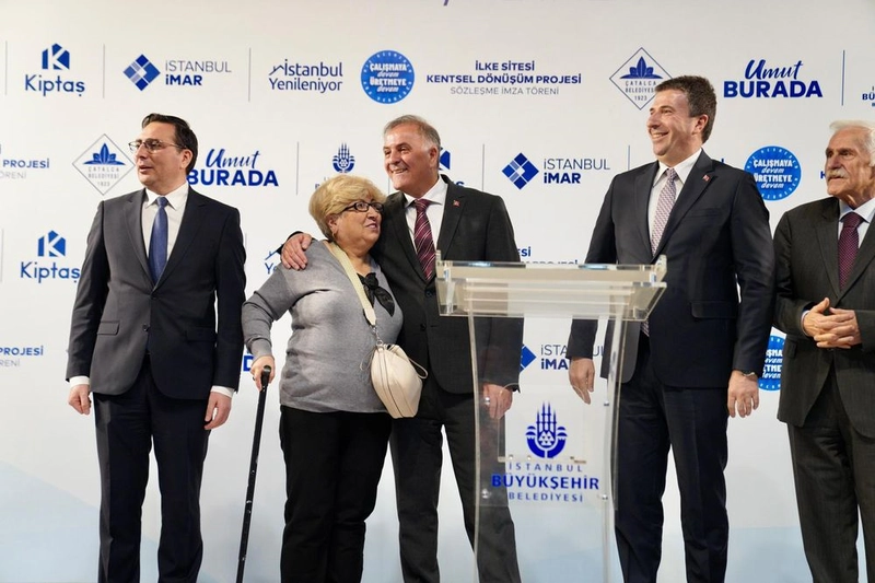 İBB iştiraki KİPTAŞ, Çatalca Belediyesi ile iş birliği yaparak, 6 yıllık sorunu çözdü. KİPTAŞ; 1989 yapımı, 8 blok 71 konuttan oluşan, 2020’de riskli yapı ilan edilip aynı sene yıkılan ve kaderine terk edilen İlke Sitesi’nin yeniden yapımı için 94 hak sahibiyle anlaştı. Noter huzurunda gerçekleştirilen ‘Çatalca İlke Sitesi Kentsel Dönüşüm Sözleşme İmza Töreni’ne tanıklık eden İBB Başkanvekili Nuri Aslan, “Ekrem İmamoğlu, Beylikdüzü'nün şehir plancısı Belediye Başkanı, bürokrat belediye şehir plancısı arkadaşlarımız, belediye başkanlarımız… Tamamı tutuklu. Biz, emanet taşıyıcı olarak, maksimum titizlikle gece-gündüz çalışıyoruz. Ama işin ehli Ekrem İmamoğlu. O, bu memleketin gelecekteki yöneticisi, parlayan yıldızı, halkın sevgilisi Ekrem İmamoğlu. O gün bir vatandaş zarar görürse, bunun vebali benim değil, başkasının boynunadır,” dedi.