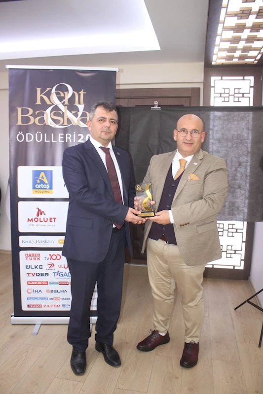 Kent ve Başkan dergisinin her yıl geleneksel olarak düzenlediği tüm Türkiye’yi kapsayan ve tüm belediyelerin aday olduğu Kent ve Başkan 2023 Ödül törenine yurt dışı programından dolayı katılım sağlayamayan Belediye Başkanımız Serkan Koyuncu’ya ödülü, Kent ve Başkan Genel Yayın Yönetmeni Okan Geçgel tarafından makam odasında takdim edildi.