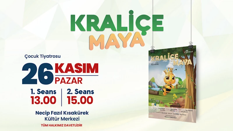 Büyükşehir Belediyesi, 26 Kasım Pazar günü NFK Kültür Merkezi’nde ücretsiz olarak düzenlenecek ‘Kraliçe Maya’ adlı tiyatro gösterisine tüm çocukları davet etti.